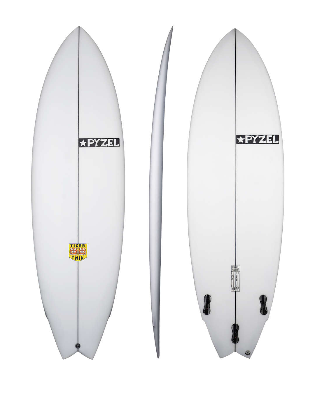 Introducing the Tiger Twin (2+1), the newest addition to the Pyzel Tiger Series. Originally designed for easy speed in weaker waves, the Tiger Twin is a special blend of two of our most loved smaller wave designs, the Happy Twin and the White Tiger. Both of these models have been favorites of our customers and team for years.