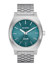 A true Nixon icon just got supercharged. Introducing the new Time Teller Solar. Built with the simple sophistication you know and love, the Time Teller Solar features a bigger case at 40mm, a new quick release 5-link bracelet with a deployment clasp that can be adjusted without a tool, and a 100m / 10 ATM waterproof rating. This watch is ready to make you look and feel good wherever you go.