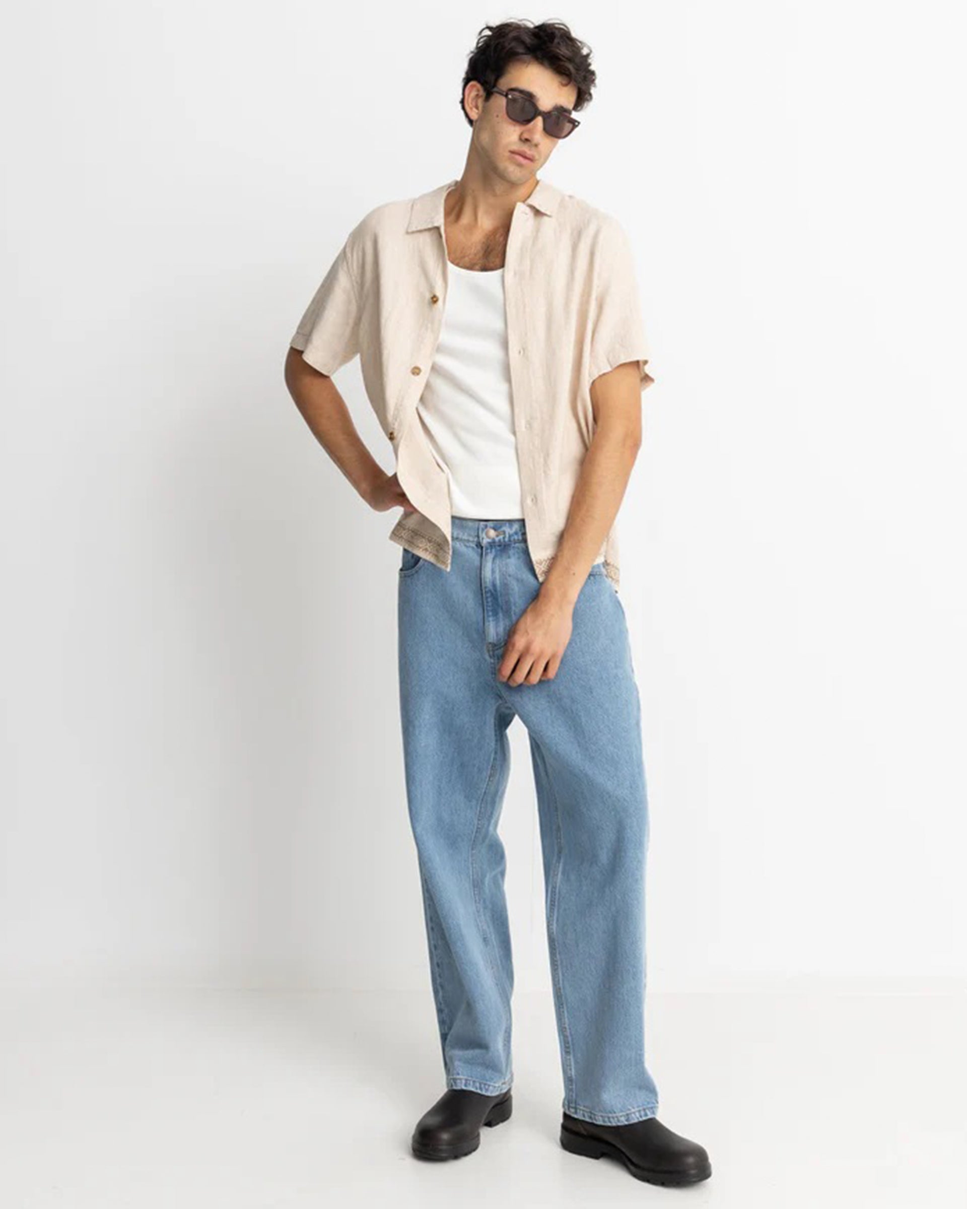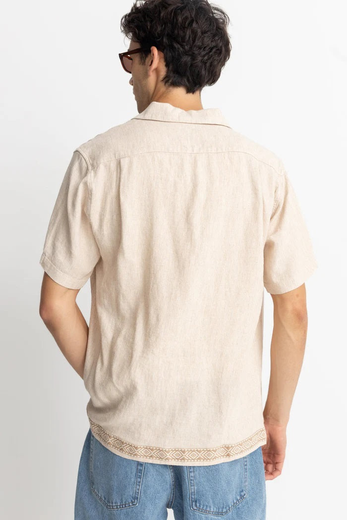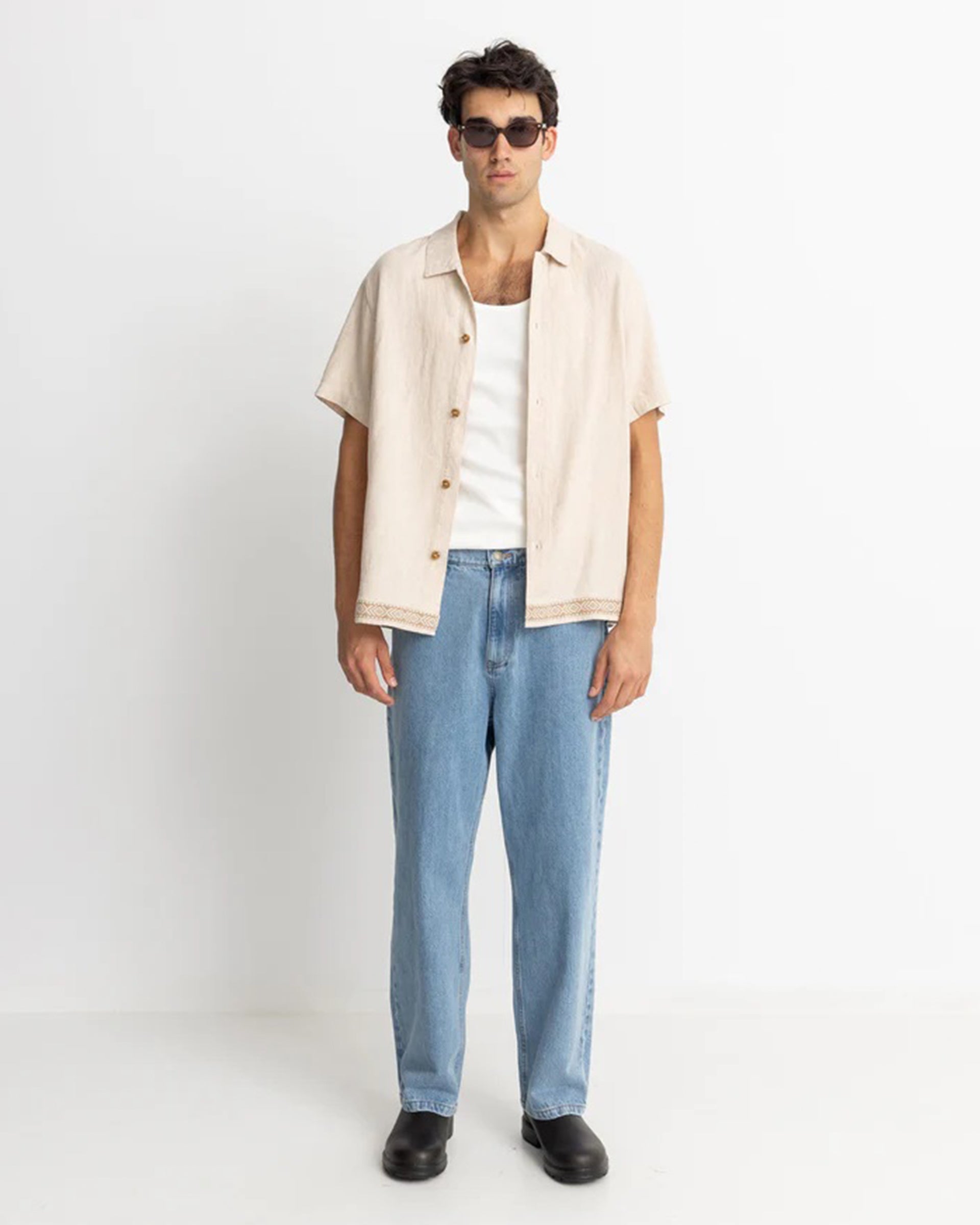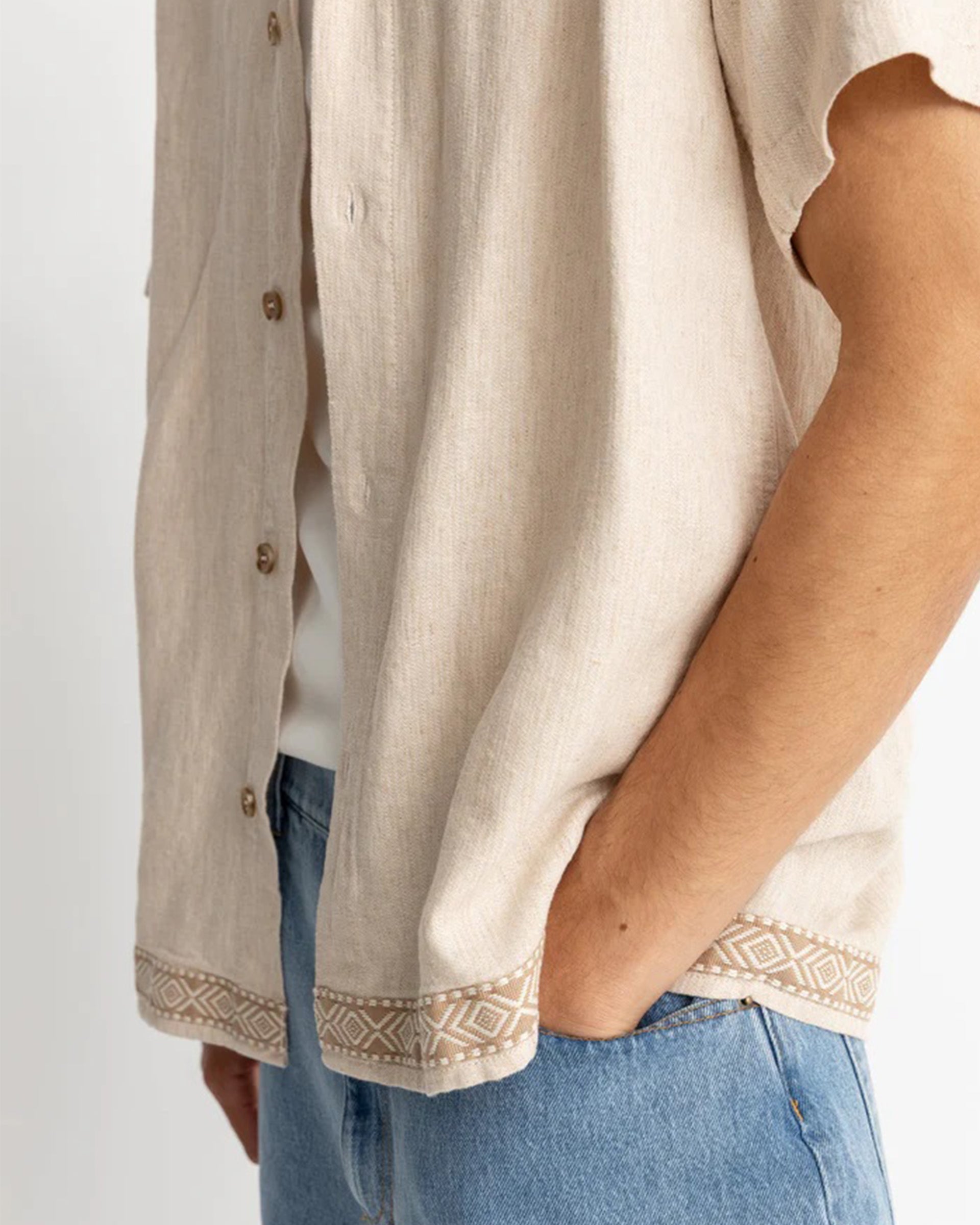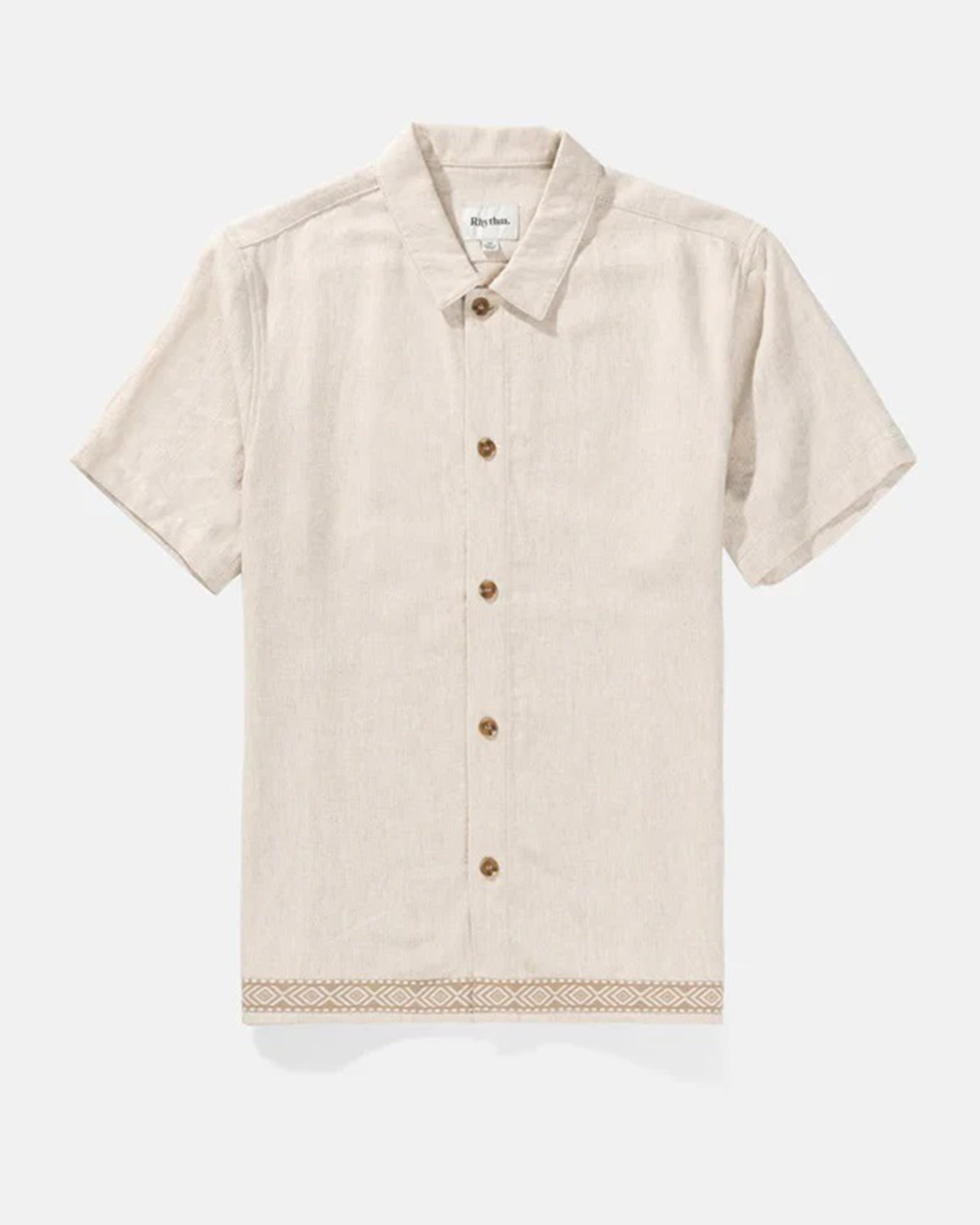 This textured Trim SS Shirt has been crafted from a soft 11-wale Cotton and Linen blend, and comes with a woven trim hem new to the Rhythm collection. In fact, the details in this timeless tee make it a refined choice for the days more relaxed moments.