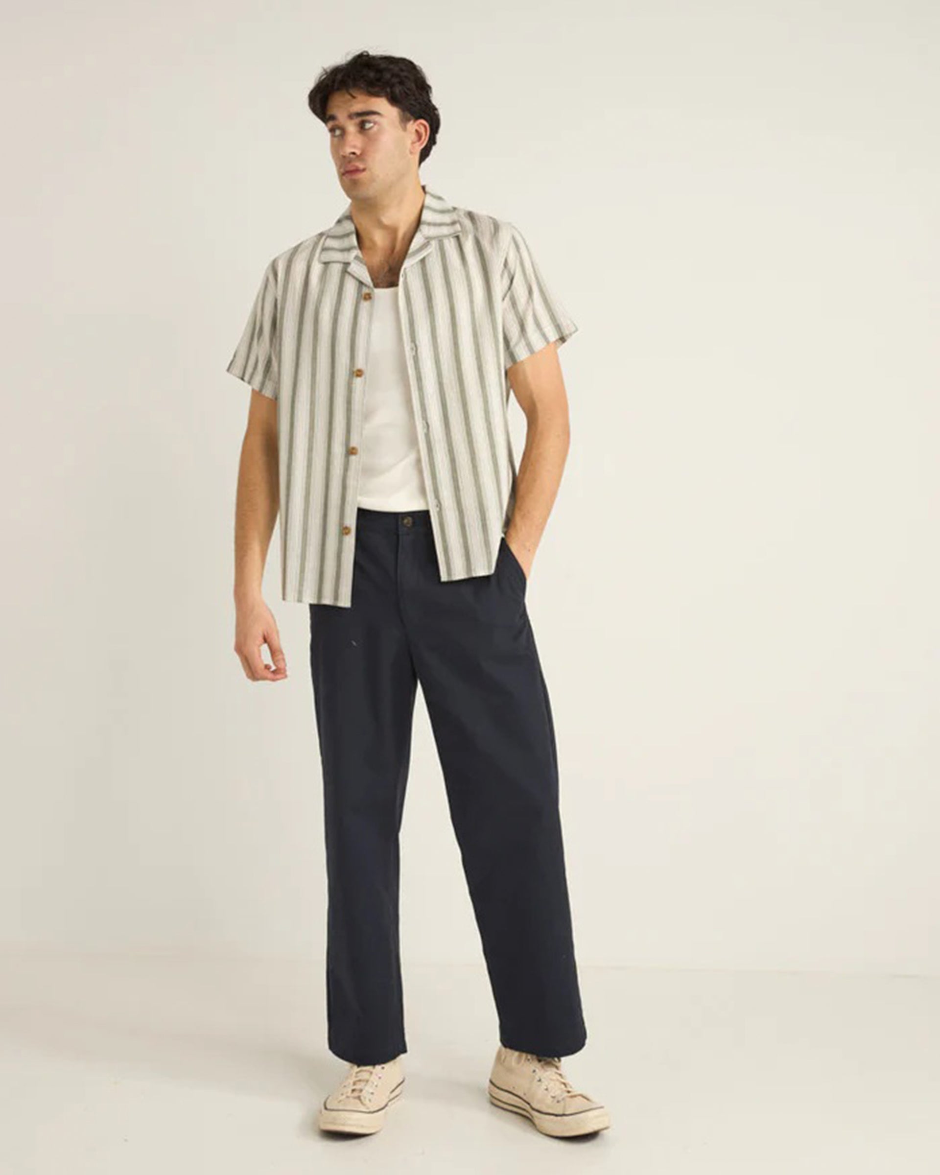 Crafted from 100% cotton with a yarn-dyed stripe, this Vacation Stripe SS Shirt offers a relaxed feel for warm days. With a Cuban collar, it’s been washed for a vintage hand feel — making it the perfect companion for stylish coffee-catch ups, early evening strolls, or long days lounging by the coast.