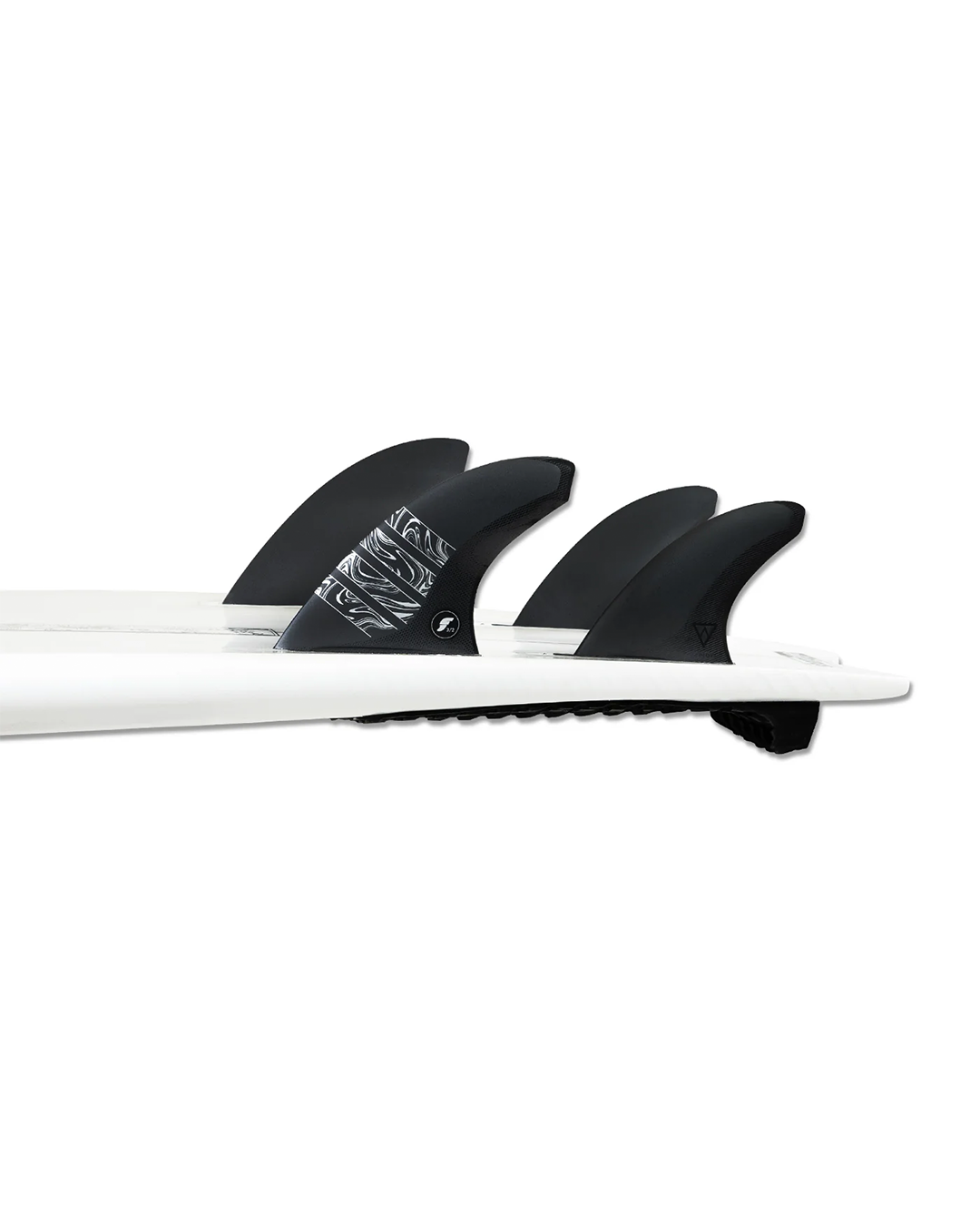 The Alpha line is constructed with recycled fishing combined with our C6 air-infused carbon. The 5-fin set is designed to be ridden as either a Thruster or Quad set-up, packaged together for more versatility throughout your quiver.