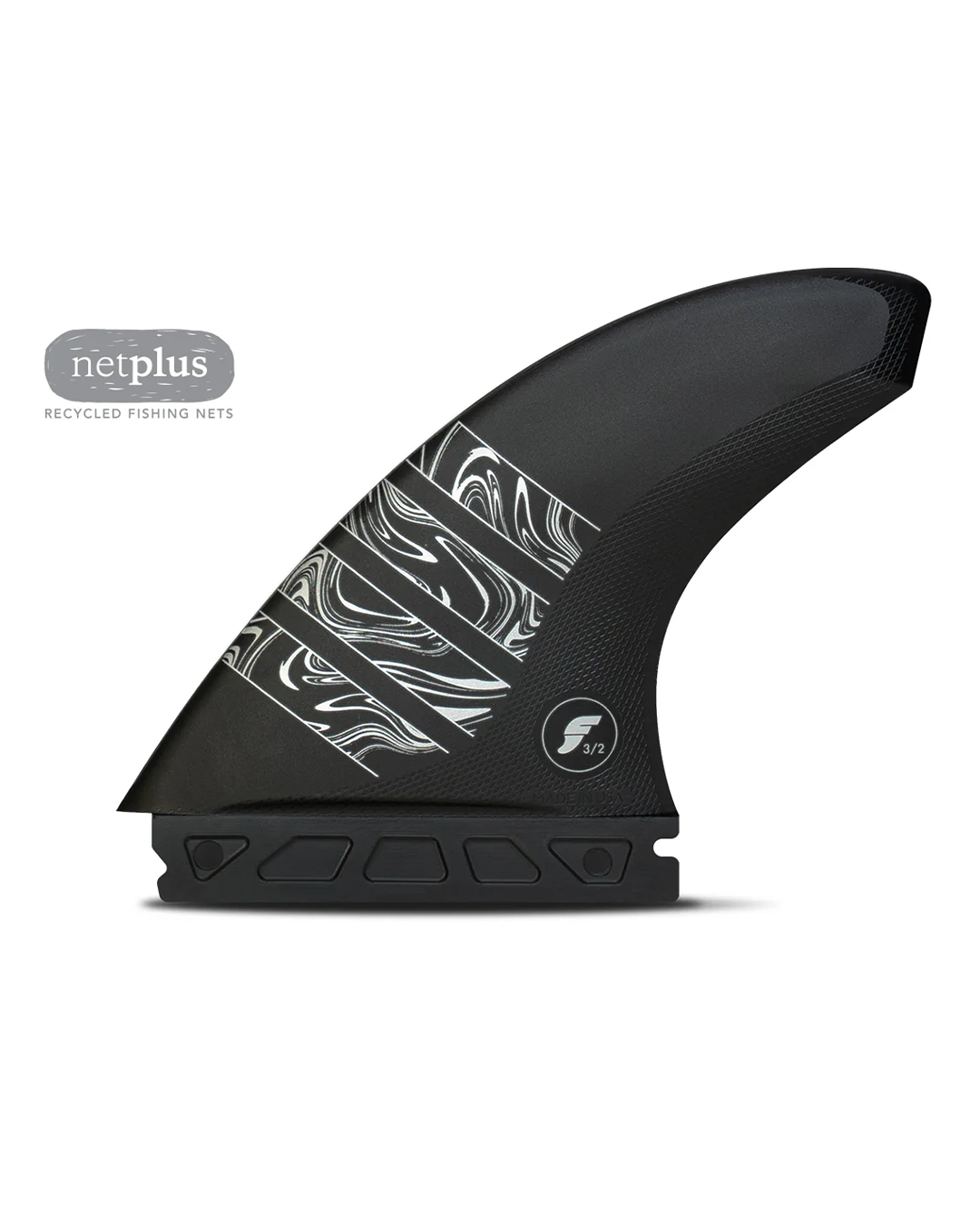 The Vector 3/2 is a Speed Generating fin, maximizing water attachment over multiple planing surfaces, resulting in lift and reduced drag. The concave surface and twist in the upper half provide a unique grip and projection sensation, delivering fluid speed generation in smaller waves and powerful connection and increased speed in larger surf, resulting in faster and improved turns.