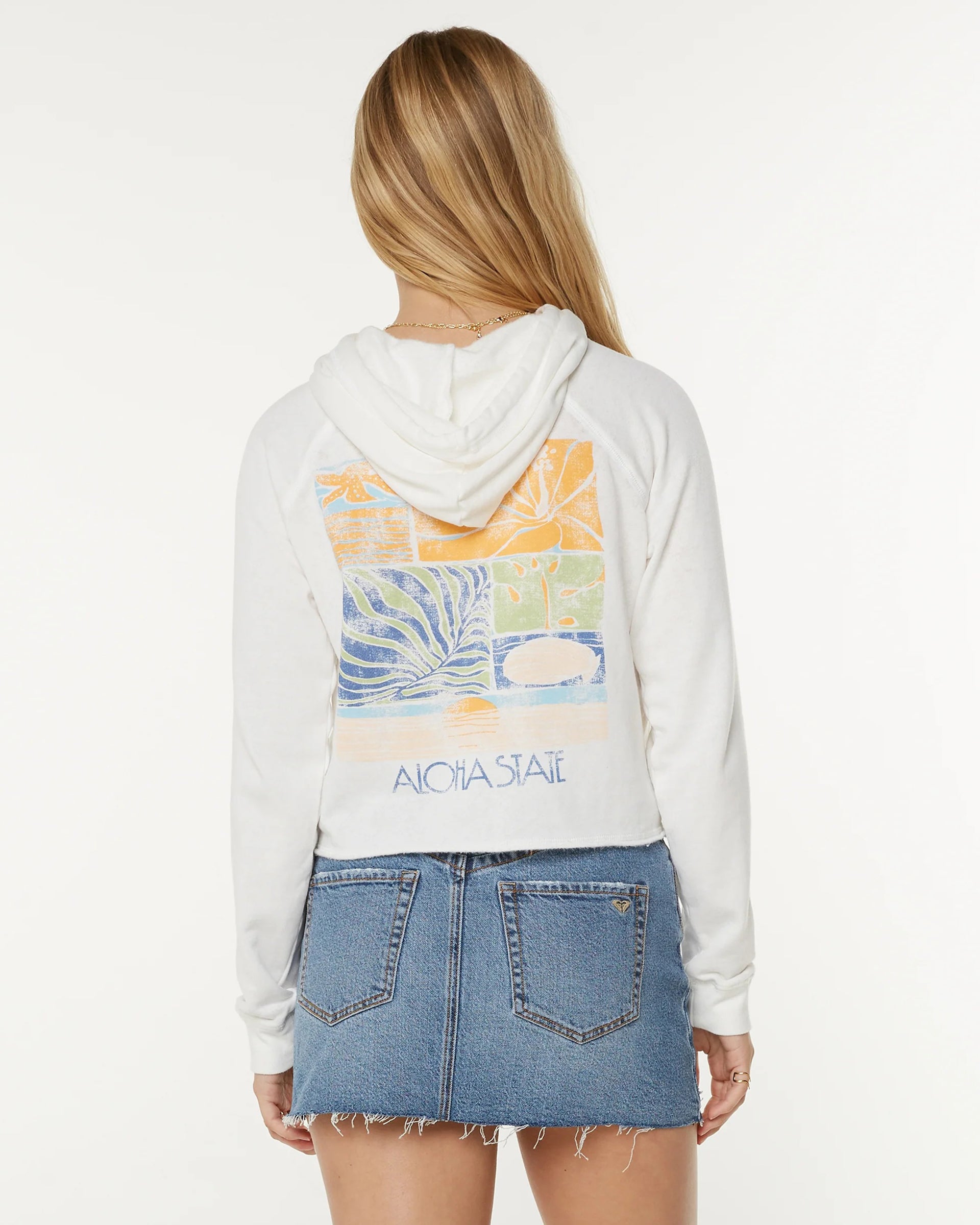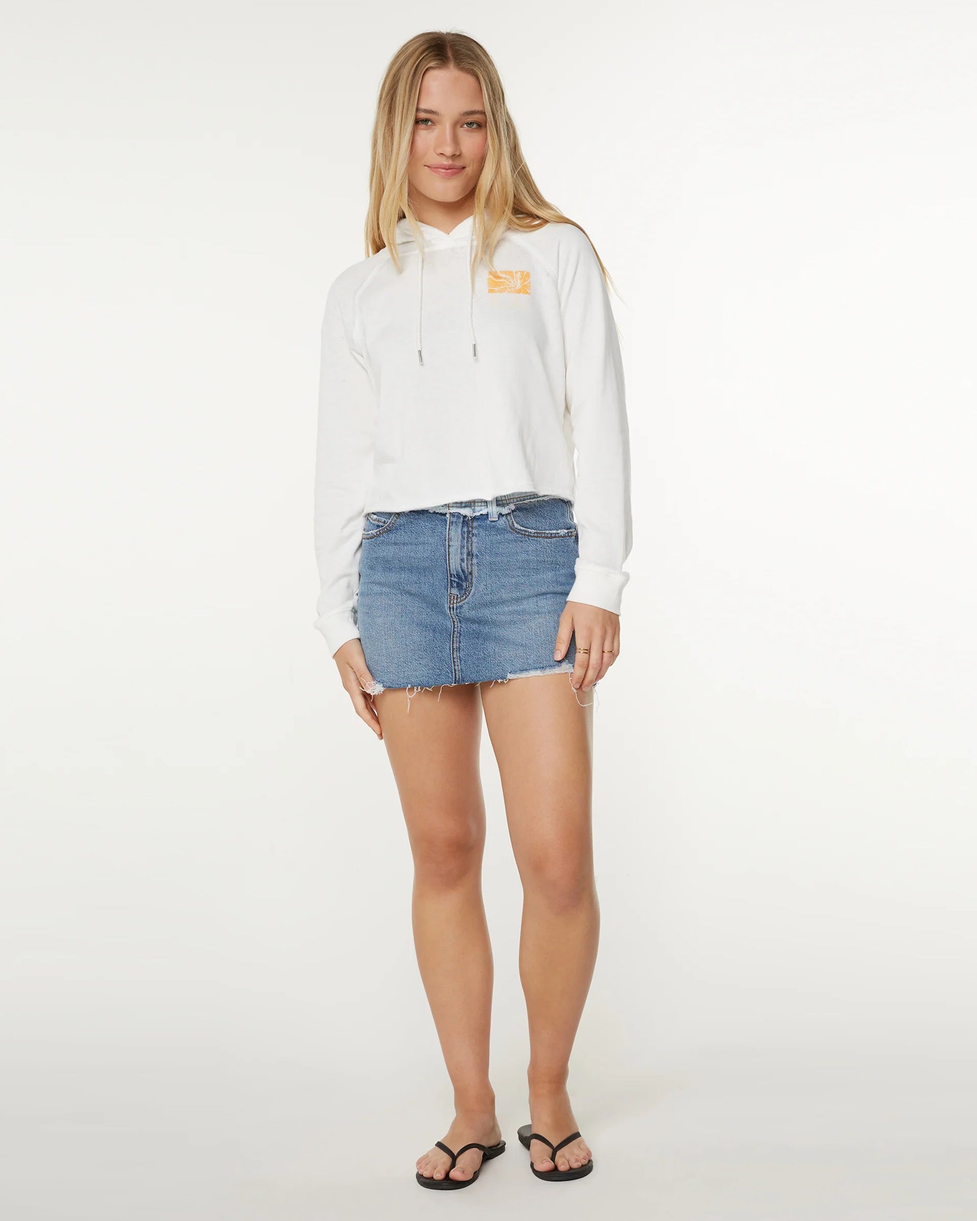 Bundle up for a breezy spring night in the We Arrived sweatshirt. Cropped yet cozy, this piece is the perfect addition to your beachy staples.