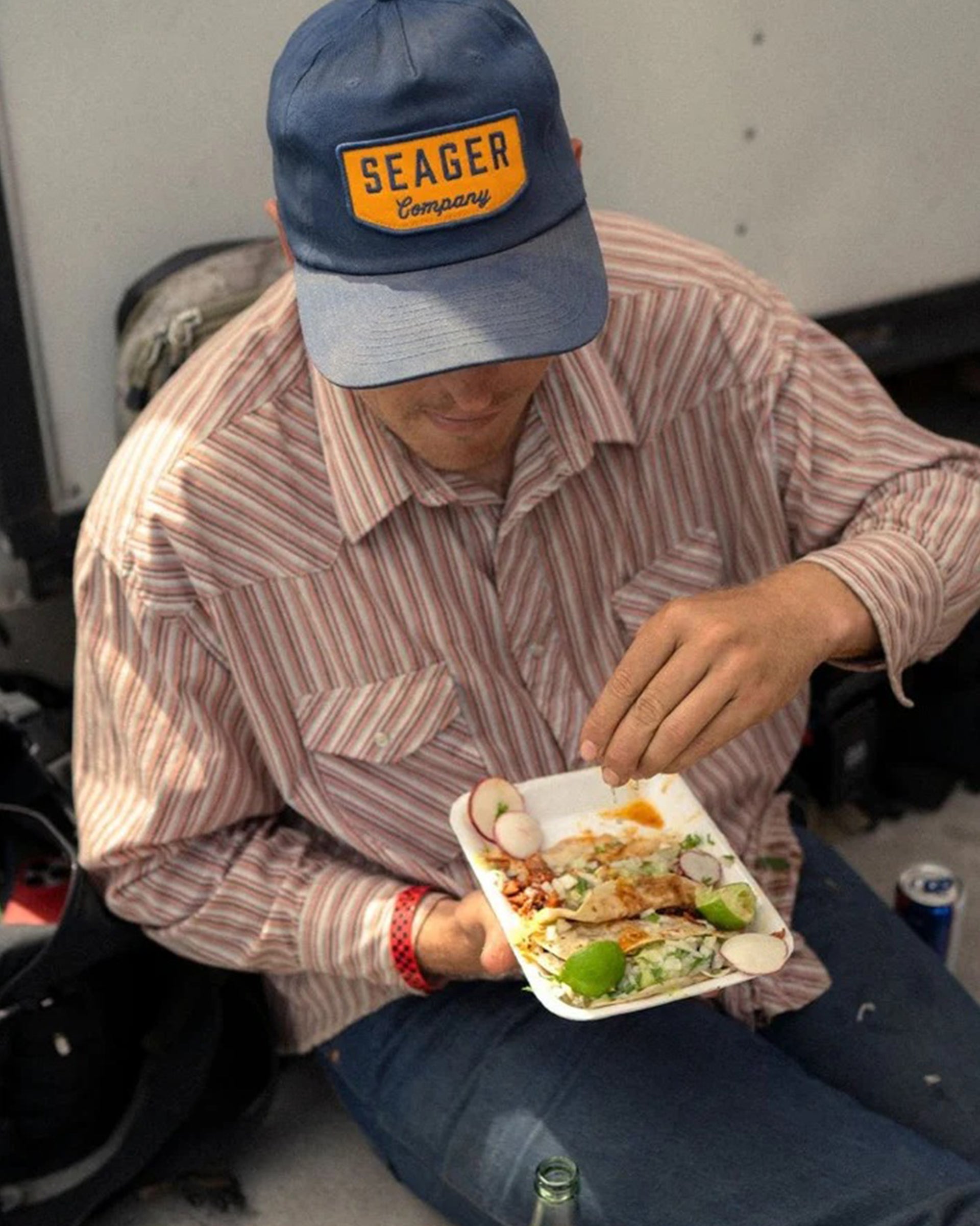 The Wilson is made of lightweight cotton and features a custom embroidered Seager patch with a slightly curved visor.